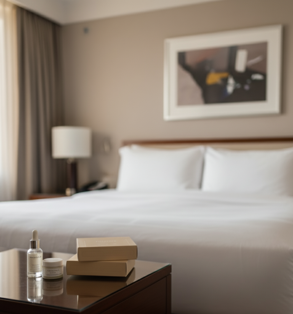 Bathroom towels — especially in hotels or while traveling — are breeding grounds for bacteria, dust, and detergent residue that can trigger acne, irritation, and sensitivities.